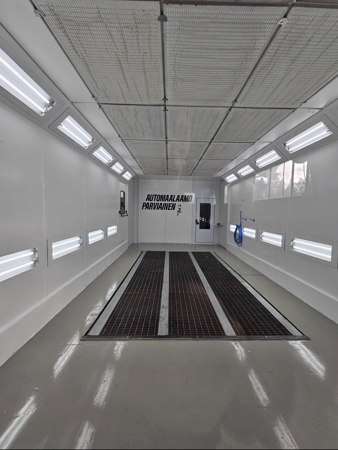 Kynnyksetön kammio: Maalauskammiomme on suunniteltu ilman korkeita kynnyksiä. Tämä takaa turvallisesti helpon sisäänajon myös erittäin matalille autoille, erikoiskalustolle ja korigrillille.